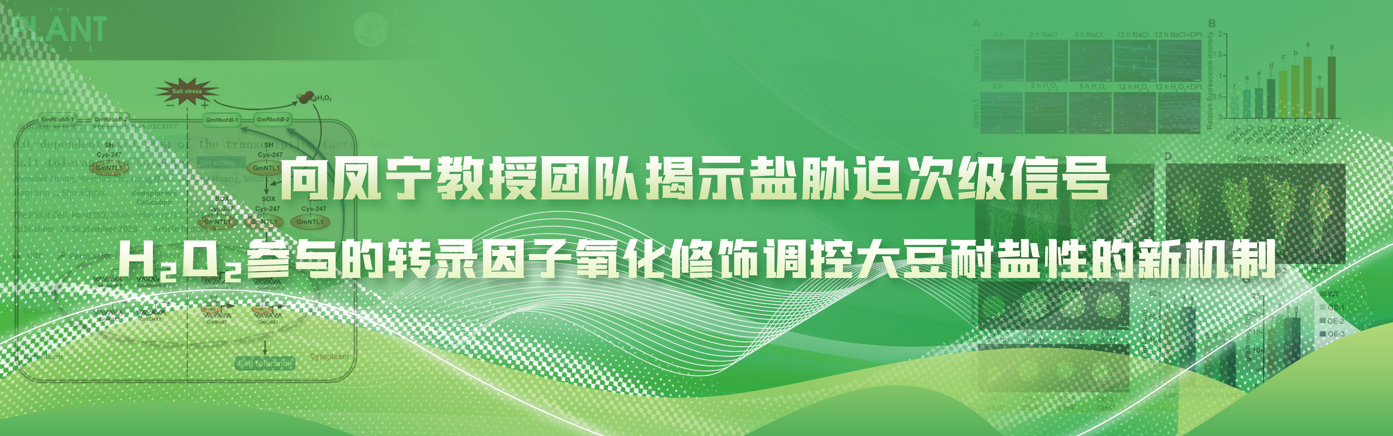 向凤宁教授团队揭示盐胁迫次级信号过氧化氢参与的转录因子氧化修饰调控大豆耐盐性的新机制设计:郭俊清供图:宣传部