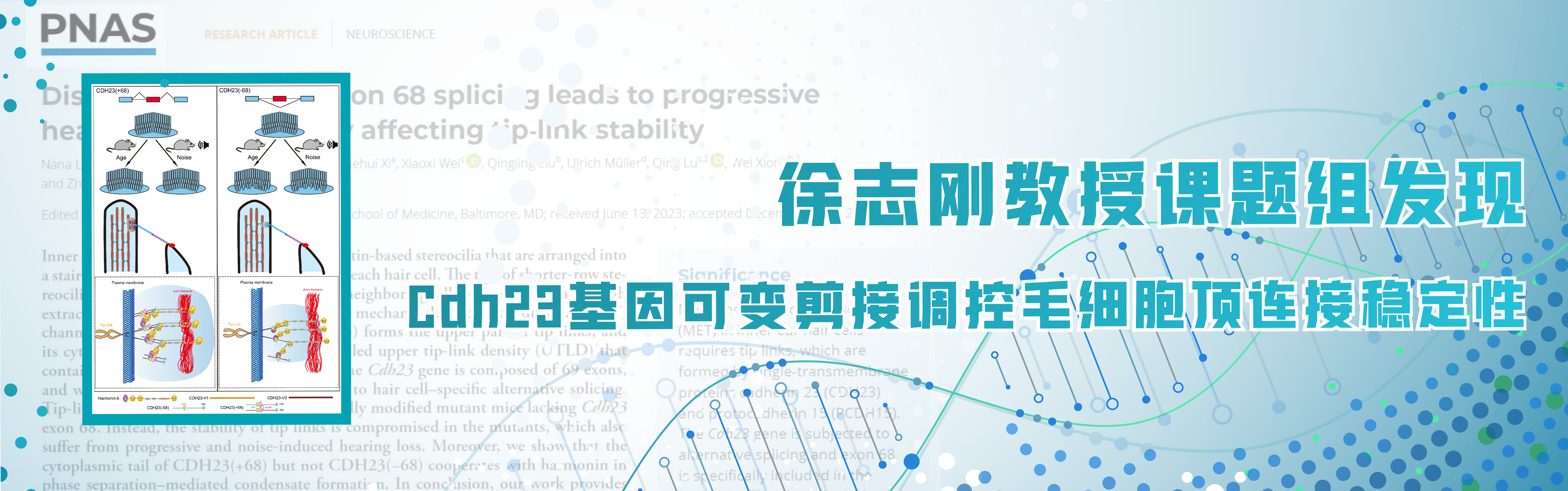 徐志刚教授课题组发现Cdh23基因可变剪接调控毛细胞顶连接稳定性设计:胡洋供图:宣传部