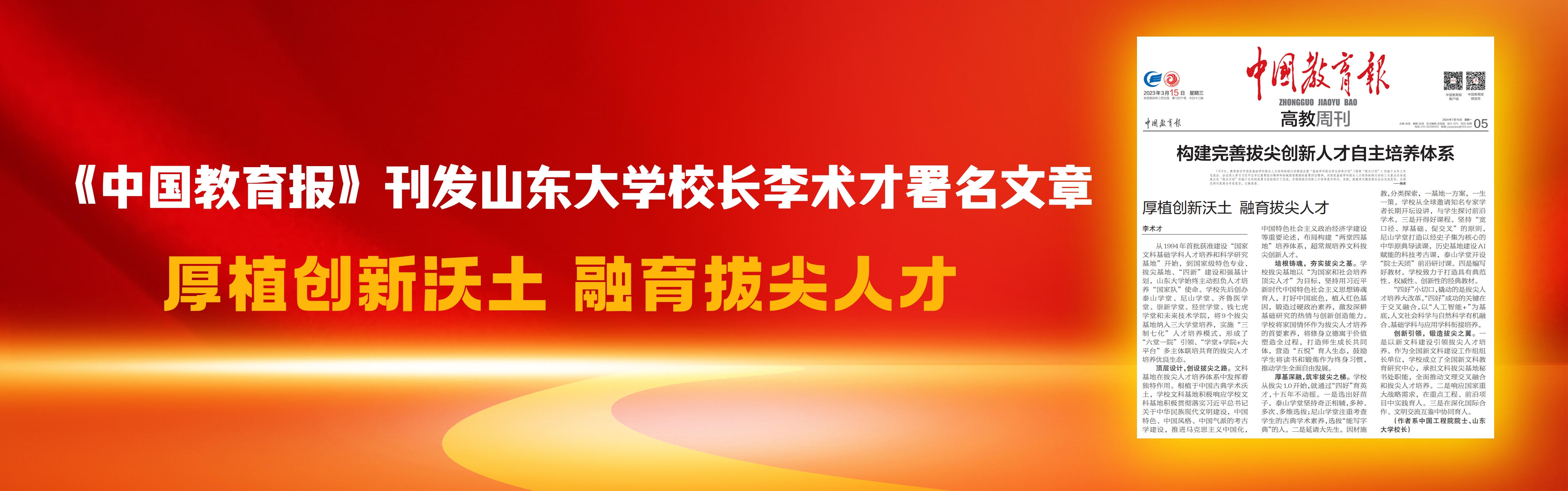 《中国教育报》刊发JNTY.COM校长李术才署名文章:厚植创新沃土 融育拔尖人才设计:刘怡康供图:宣传部