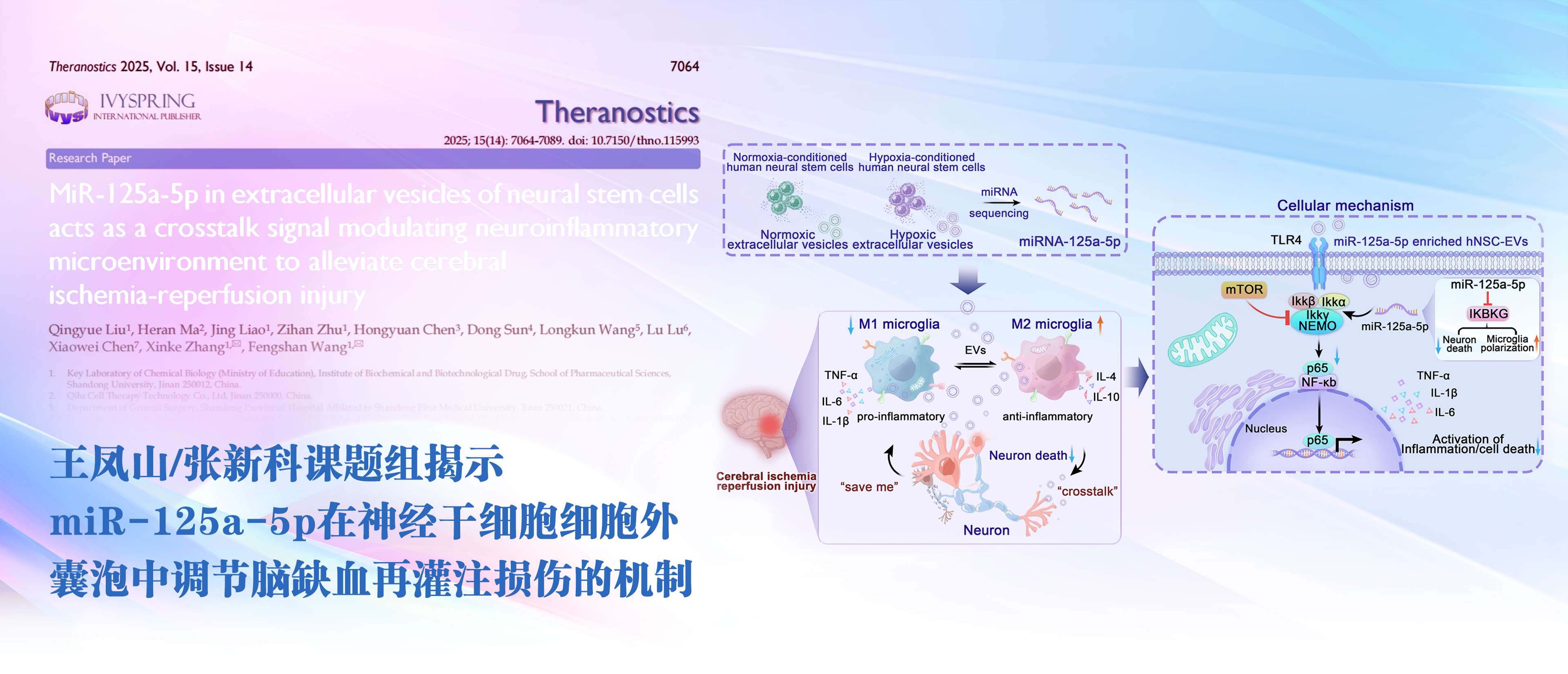 王凤山/张新科课题组揭示miR-125a-5p在神经干细胞细胞外囊泡中调节脑缺血再灌注损伤的机制设计:郭俊清供图:宣传部